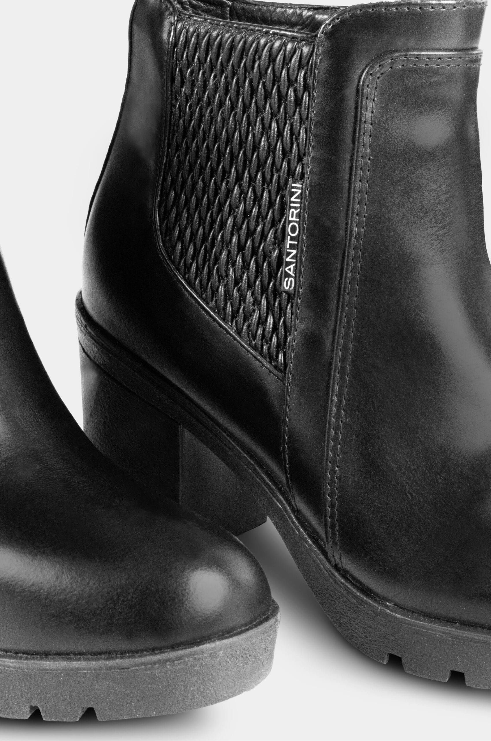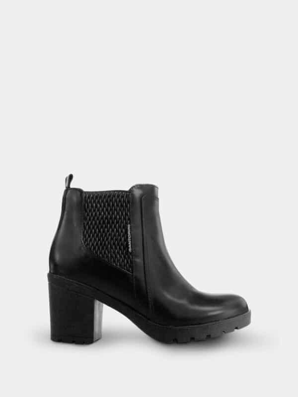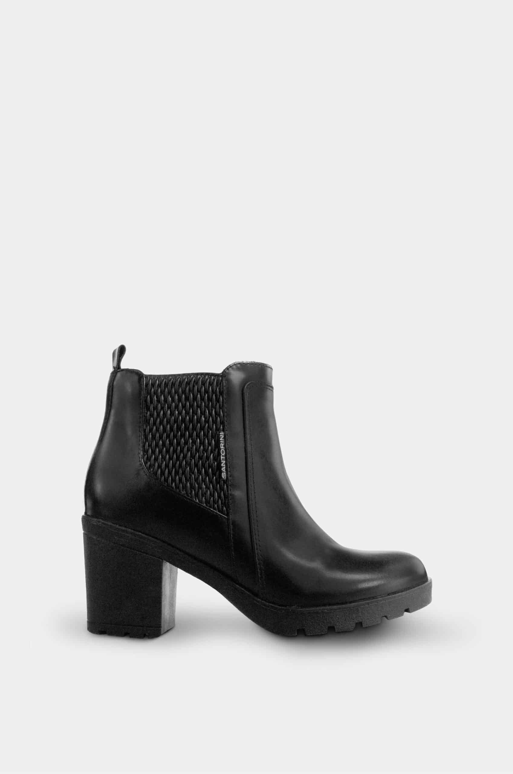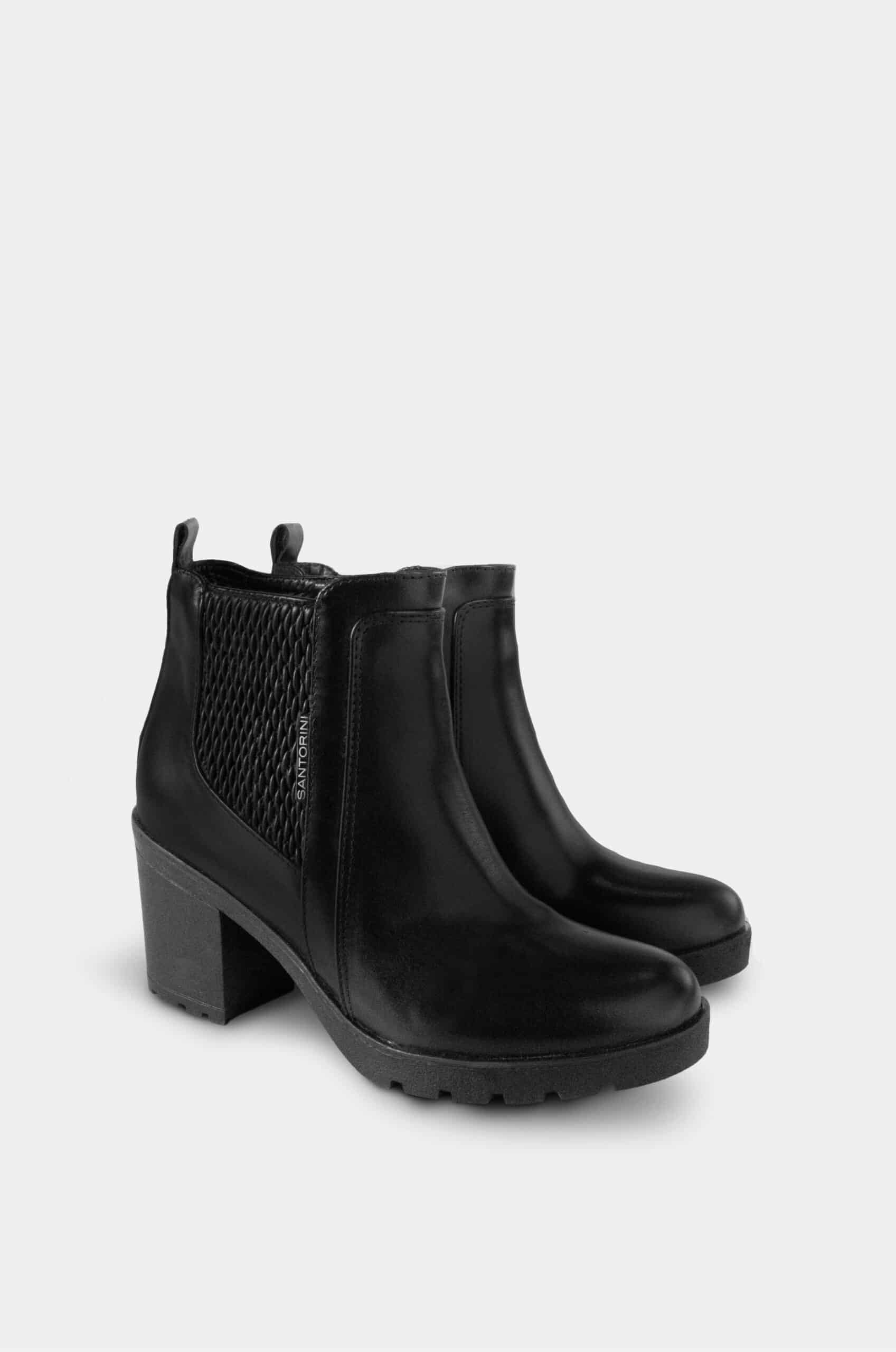 Diseño moderno y versátil ideal para el uso diario en cuero. Su silueta al tobillo combina una parte frontal lisa con paneles laterales en textura trenzada que aportan un detalle sofisticado y diferente.