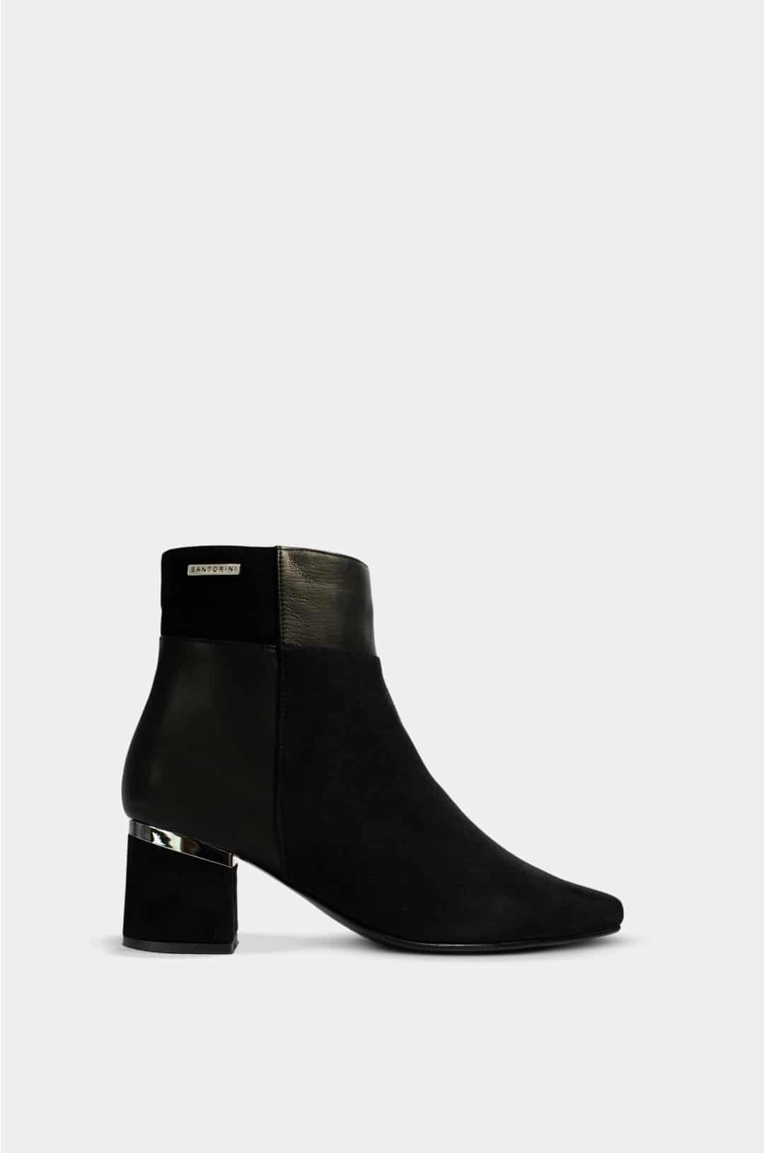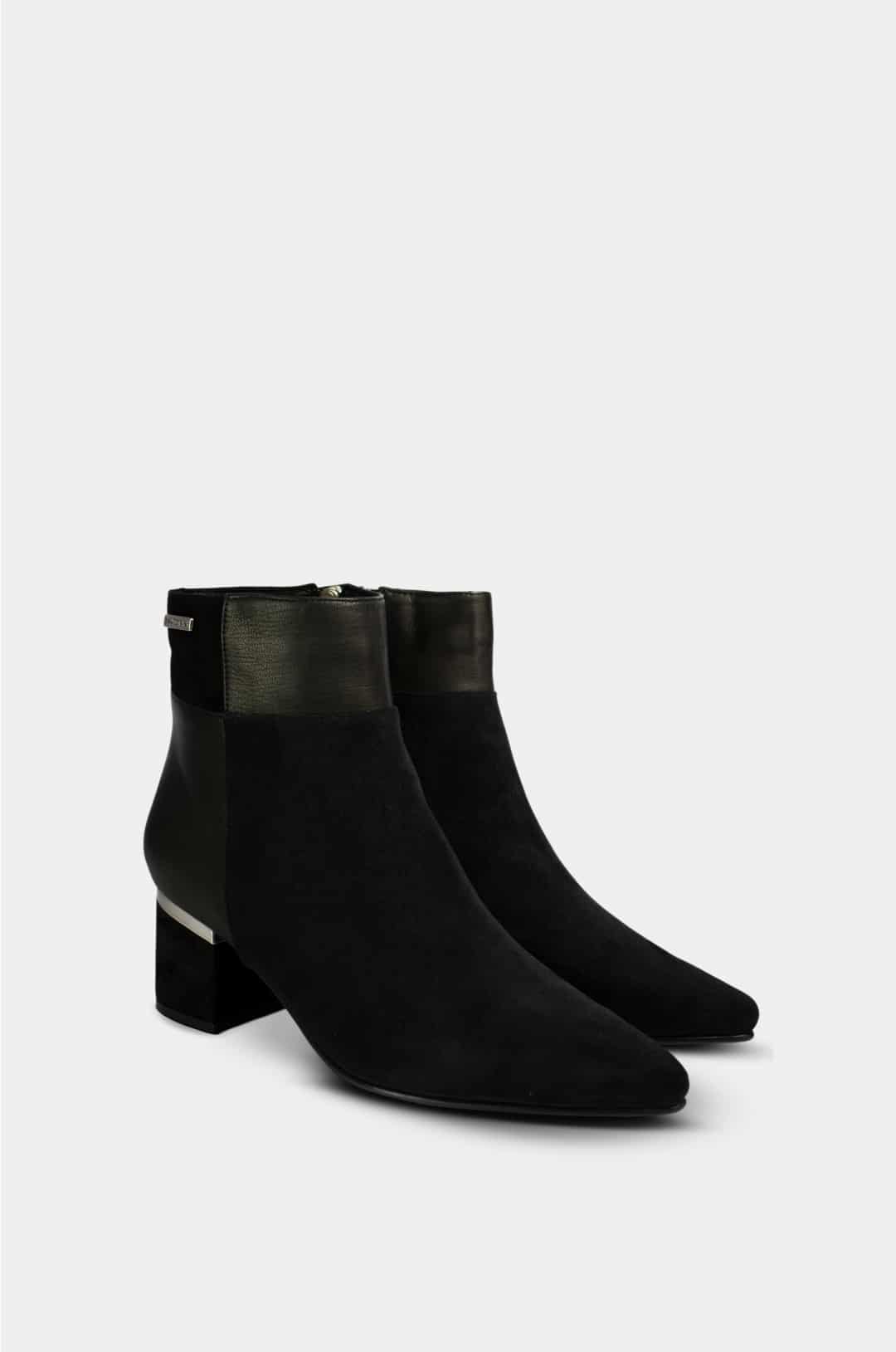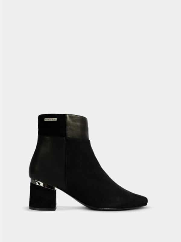 Este botín de tacón para mujer es la combinación perfecta entre sofisticación y funcionalidad. Su diseño limpio en color negro aporta un estilo atemporal que se adapta fácilmente a diferentes looks, mientras que el tacón medio de forma cuadrada brinda estabilidad y comodidad para un uso prolongado. Los sutiles detalles metálicos añaden un toque moderno y refinado que eleva cualquier outfit.