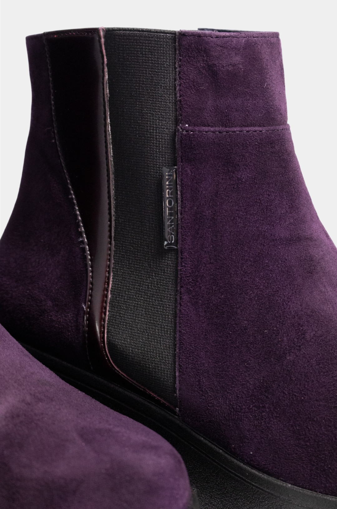 Botín marca Santorini elaborado en cuero carnaza vinotinto de textura suave y acabado elegante, aportando un toque moderno y sofisticado al look. Su diseño incorpora una suela corrida dentada, robusta y cómoda, que brinda mayor estabilidad y un estilo urbano contemporáneo. La silueta es cómoda y funcional, con punta redondeada y terminaciones limpias que realzan su estética.