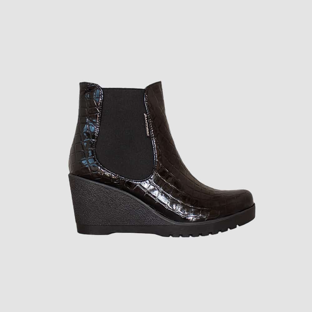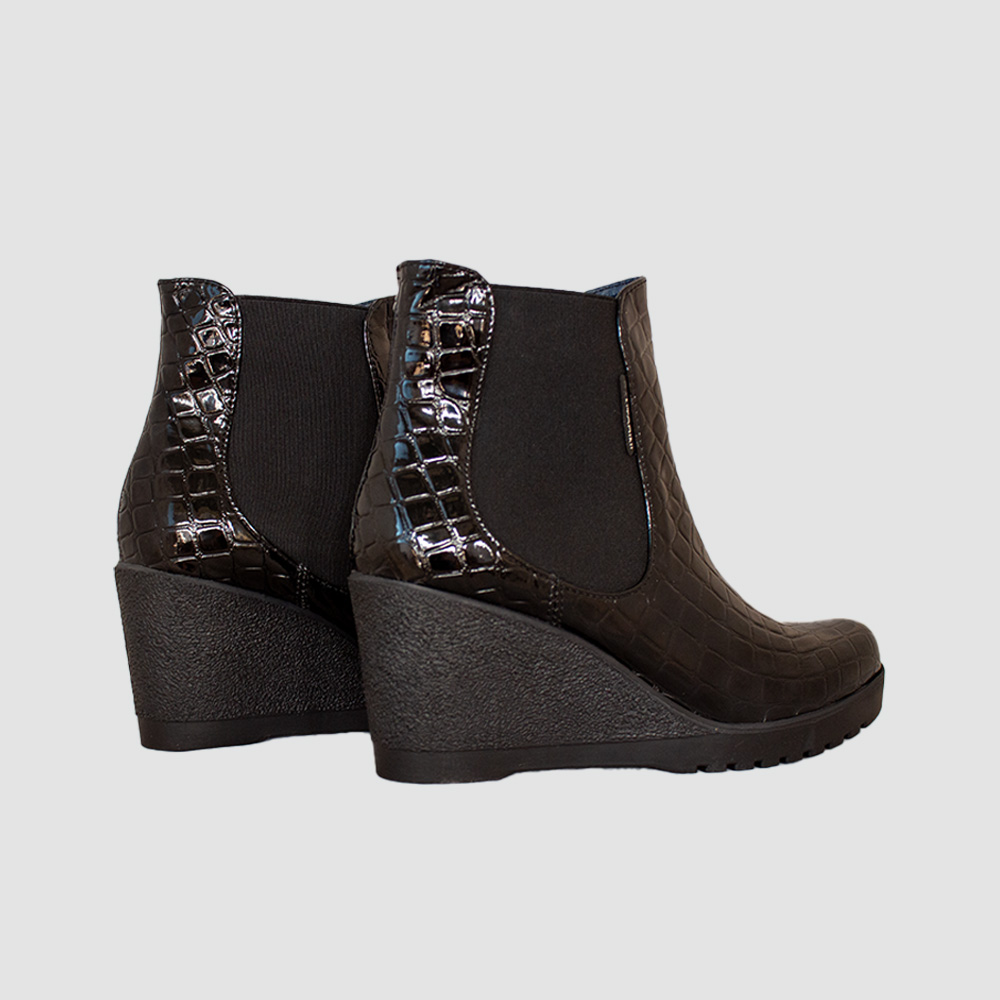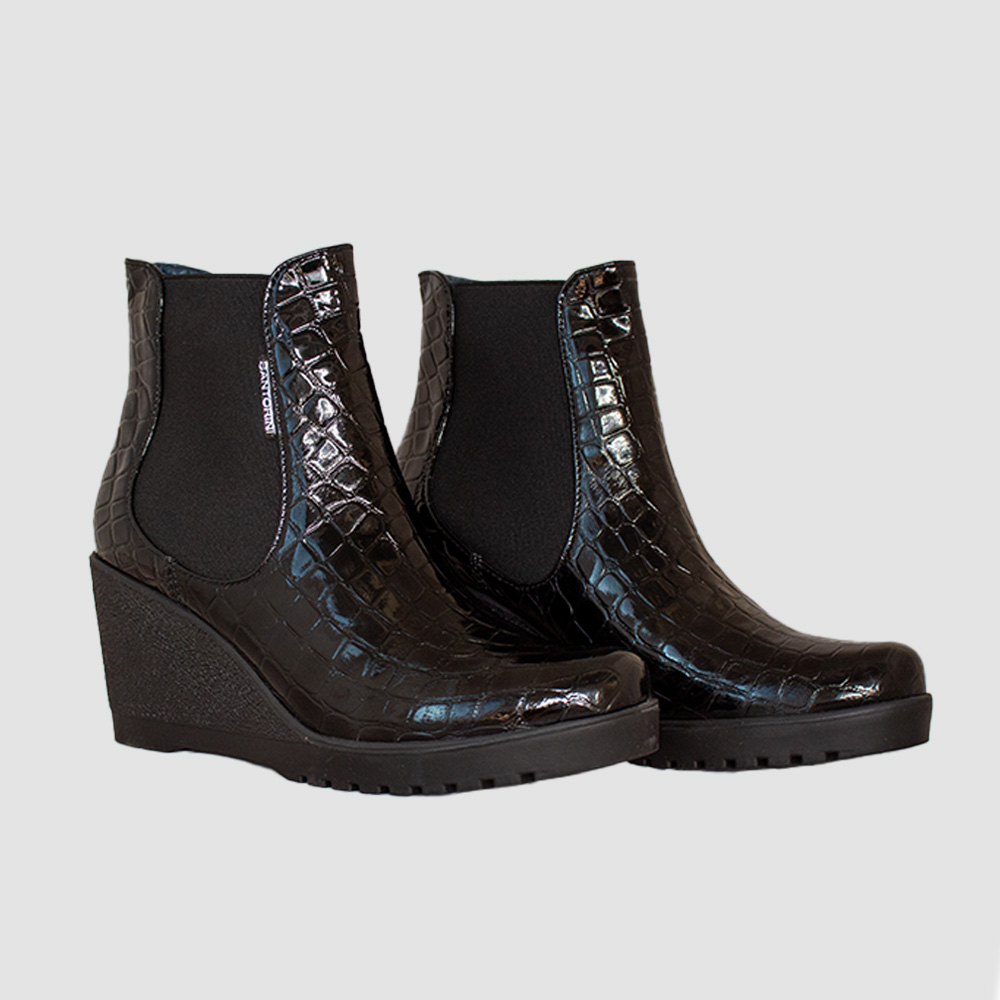 Los botines Danei en charol PU de color negro son sofisticados y llamativos. Con un acabado brillante, tienen un estilo moderno que añadirá un toque de elegancia a cualquier conjunto. Perfectos para ocasiones especiales o para darle un toque chic a un look casual.
