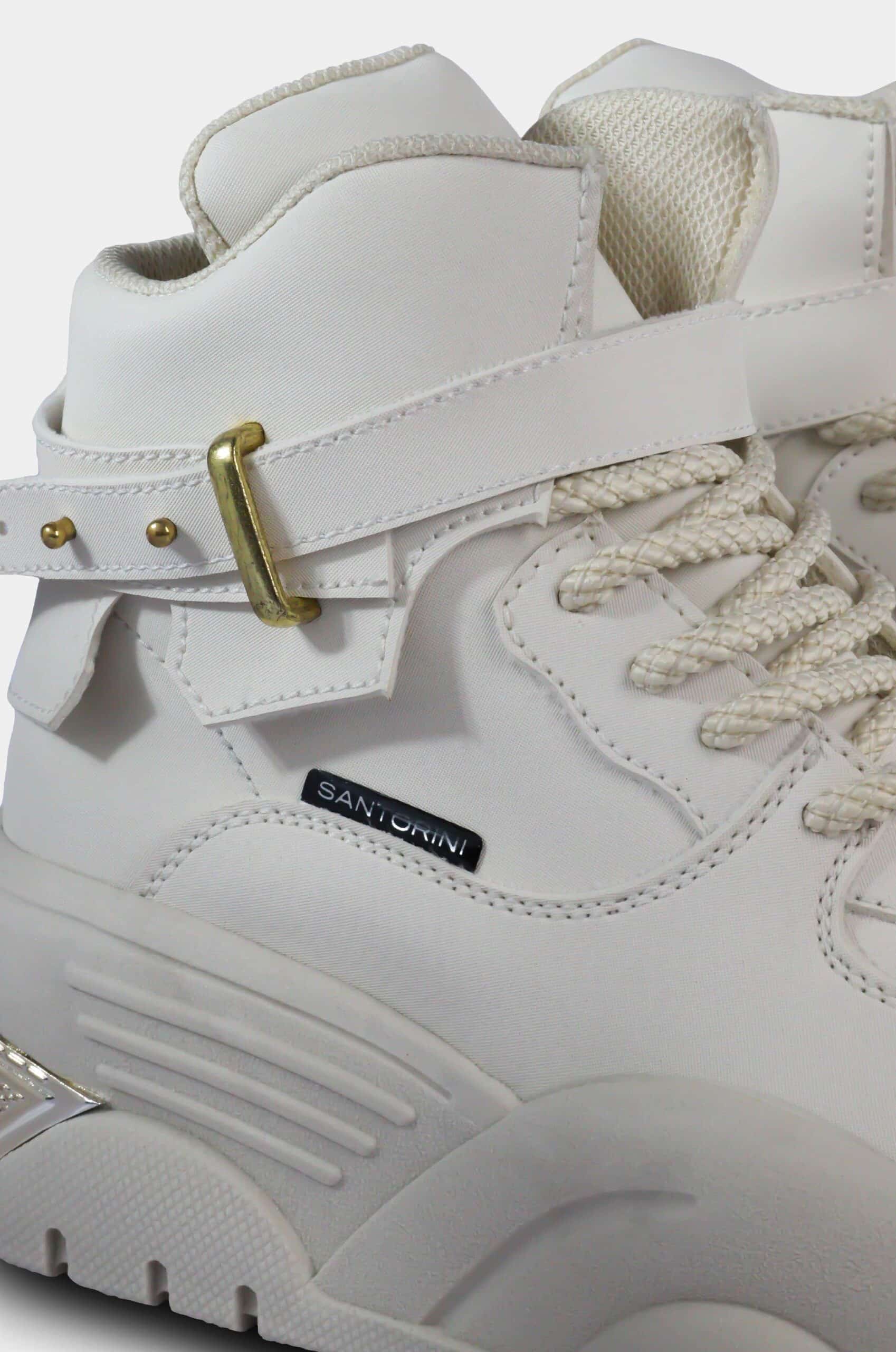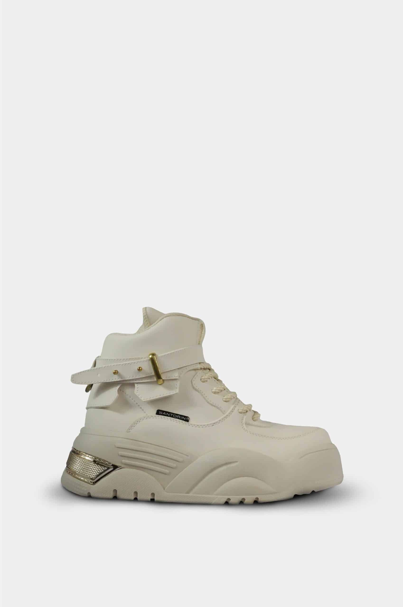 Tenis en material sintético de alta calidad marca SANTORINI , en tono marfil/beige claro que aporta un estilo moderno y versátil. Presenta un diseño tipo urbano con caña media acolchada que brinda mayor comodidad y soporte al tobillo.