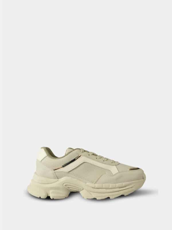 Cuenta con cordones del mismo tono para un ajuste cómodo y una suela gruesa tipo chunky, con diseño dentado que brinda mayor estabilidad y confort al caminar. Es un modelo ideal para looks casuales y urbanos, perfecto para combinar con jeans, joggers o prendas deportivas, ofreciendo estilo y comodidad en cada paso.