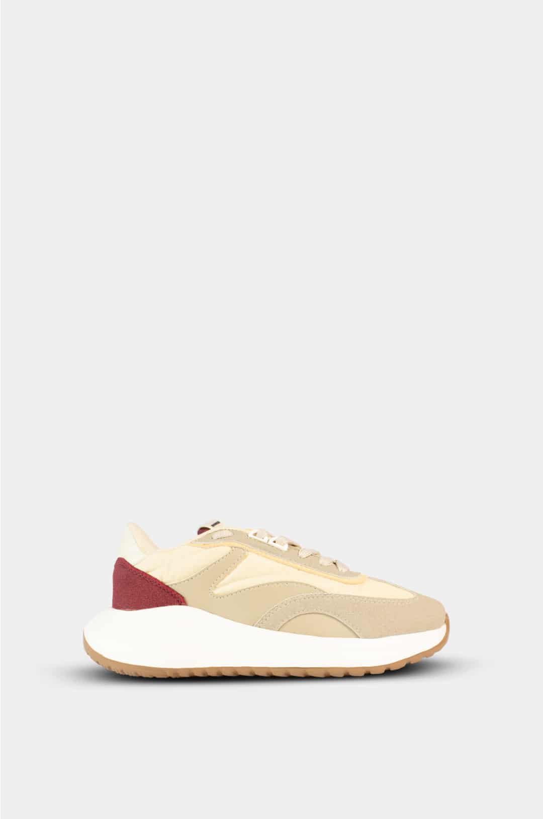 Estos tenis urbanos con plataforma destacan por su diseño limpio y moderno, ideal para quienes buscan un calzado versátil, cómodo y en tendencia. Su combinación de tonos beige con acentos contrastantes aporta un look sofisticado y fácil de combinar, mientras que la suela elevada brinda una pisada suave y estable para el uso diario. Una opción perfecta para acompañar tu ritmo sin renunciar al estilo.