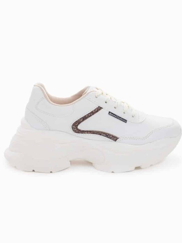 Este tenis marca Santorini está elaborado en material sintético de color beige, con un diseño moderno y urbano. Presenta una suela alta y robusta tipo chunky, que aporta altura y estilo sin perder comodidad. Su parte superior combina detalles decorativos en tono beige con textura tipo serpiente, que realzan el diseño y añaden un toque de distinción. Incluye cordones al tono y el logo de la marca Santorini en el lateral. Ideal para mujeres que buscan un calzado versátil, actual y cómodo para complementar looks casuales o deportivos con un aire sofisticado.