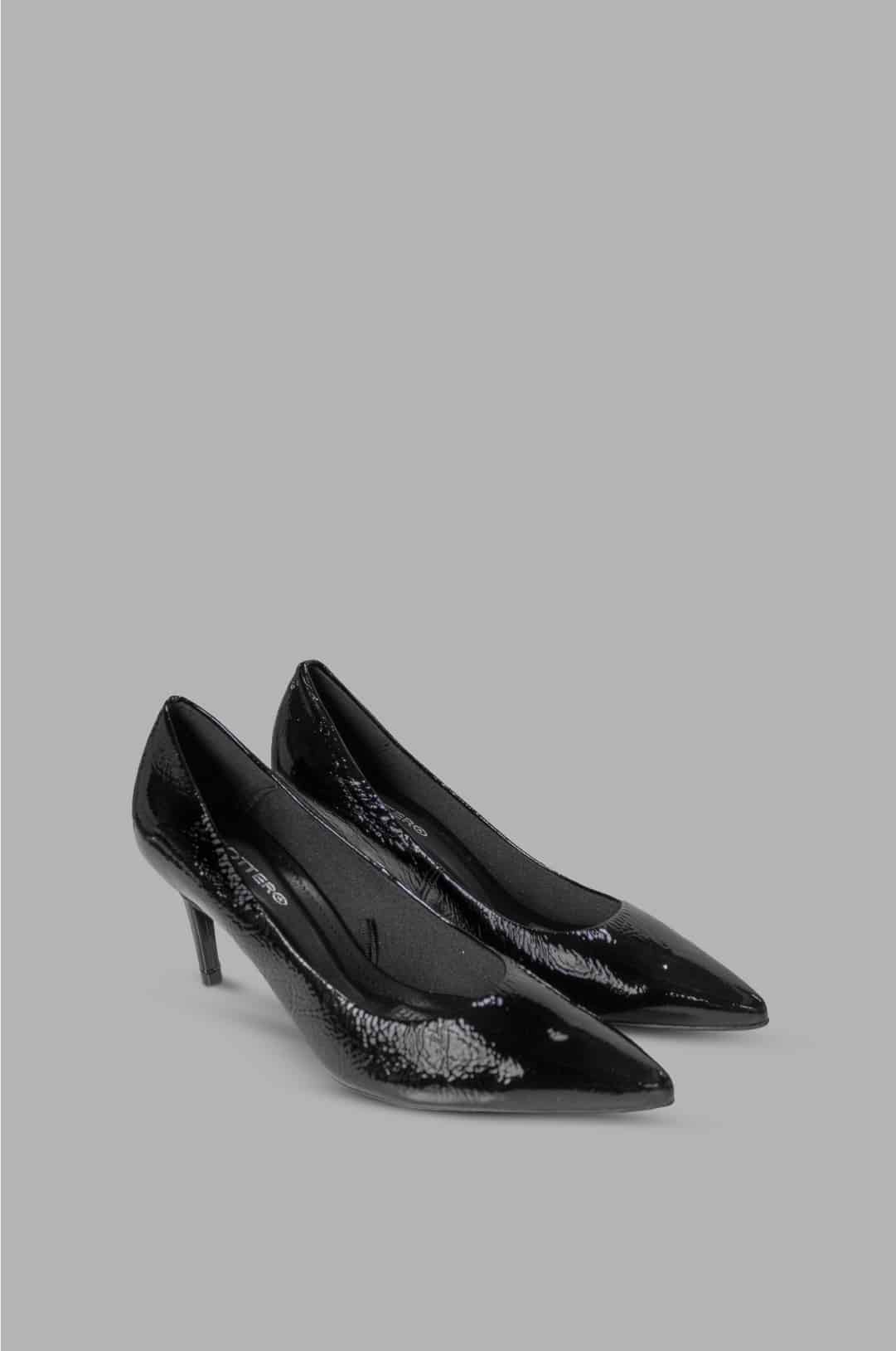 Zapato marca Bottero en cuero negro charolado es una pieza clásica y sofisticada que resalta por su brillo elegante y su diseño atemporal. Su punta fina estiliza el pie, aportando una apariencia refinada ideal para ocasiones formales o de oficina. La capellada en cuero con acabado brillante le da un toque moderno y distinguido, mientras que el forro interno suave brinda confort durante el uso prolongado.