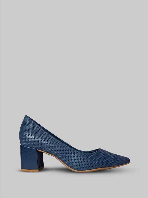 Este zapato de la marca Bottero está elaborado en cuero color azul, con un acabado texturizado microperforado que le aporta un estilo moderno y fresco. Su diseño de punta fina estiliza la figura, mientras que el tacón cuadrado de altura media ofrece un equilibrio perfecto entre elegancia y comodidad.