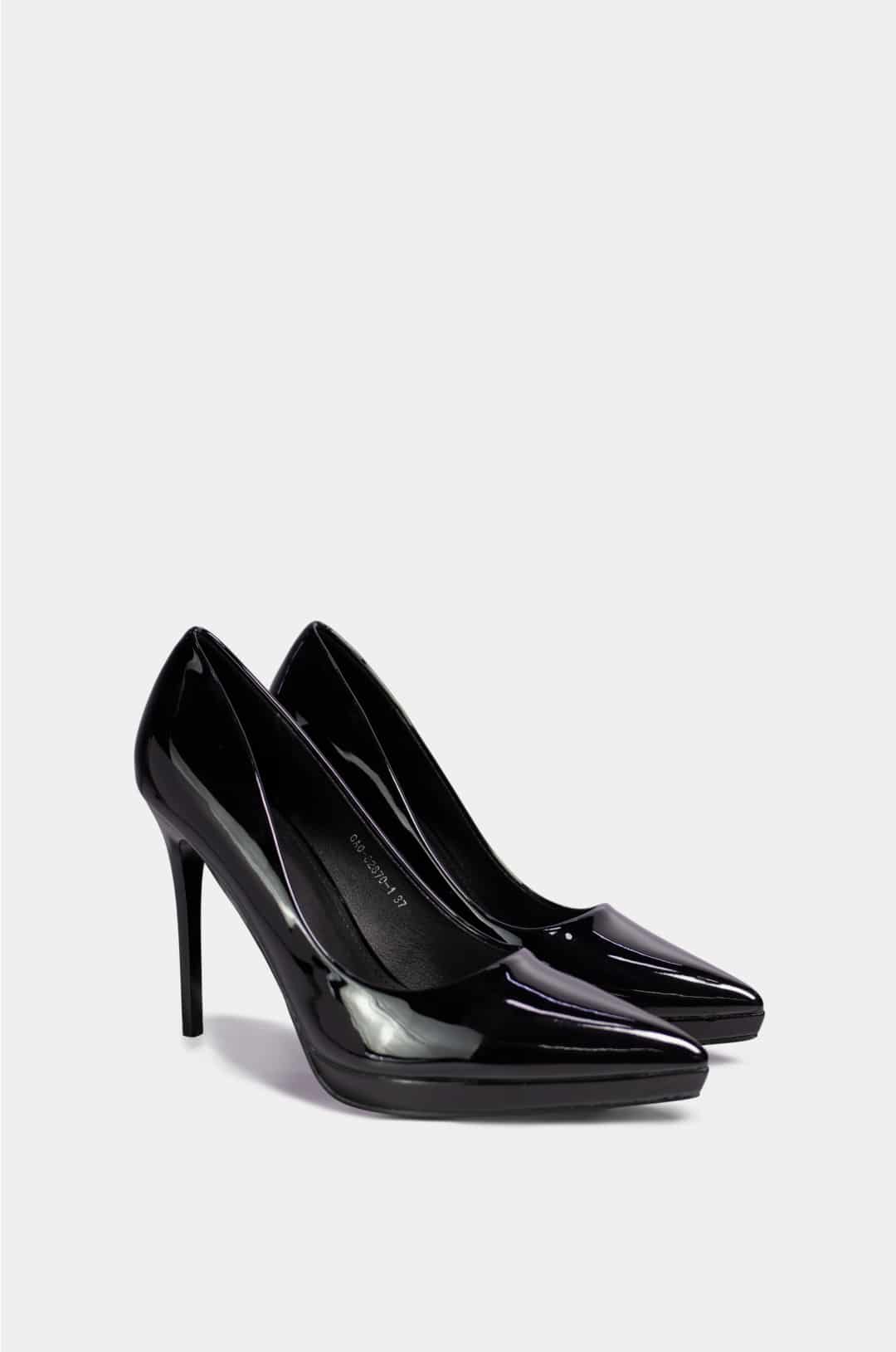 Este modelo de la marca Santorini es un clásico stiletto elaborado en material sintético tipo charol, con un acabado brillante que aporta elegancia y sofisticación. Su diseño presenta una punta fina que estiliza visualmente el pie, junto con un empeine cerrado y de líneas limpias, ideal para looks formales o de vestir.