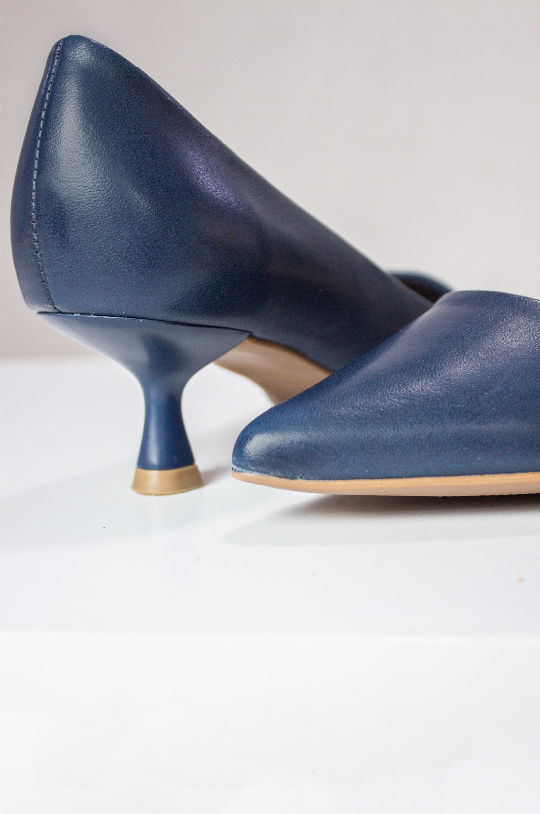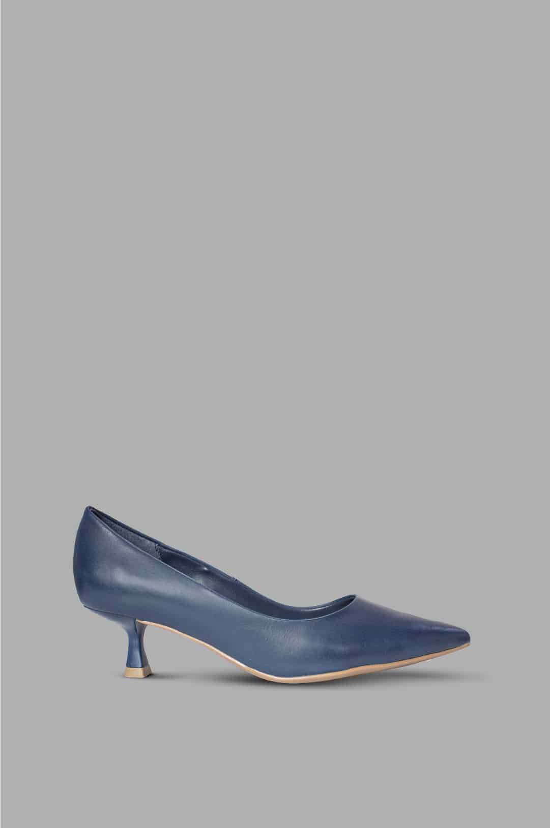 Zapato cerrado en cuero color azul marca Bottero, de diseño elegante y femenino. Presenta una punta fina o puntuda que estiliza el pie y aporta un aire sofisticado. Cuenta con un tacón medio de 3.5 cm, ideal para brindar comodidad y estabilidad durante el uso diario. Su acabado en cuero liso resalta la calidad y el estilo característico de la marca, convirtiéndolo en una opción versátil para looks formales o de oficina.