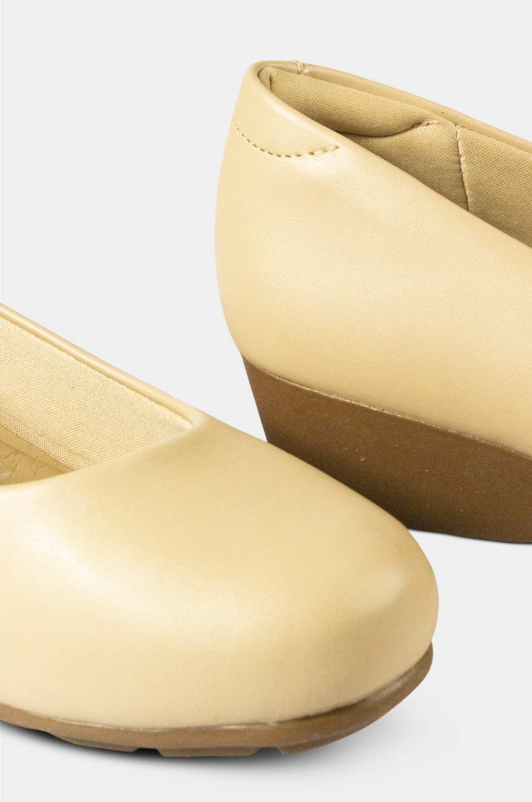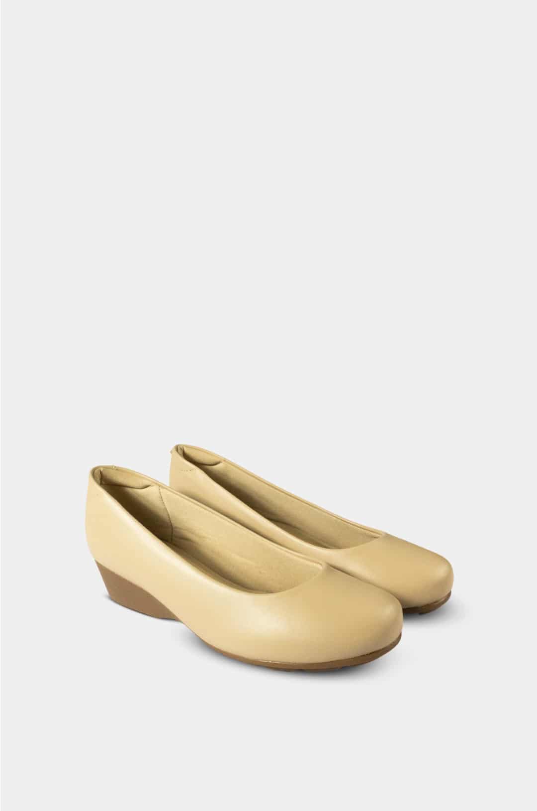 Cuenta con un tacón bajo tipo cuña, que ofrece una elevación ligera y mayor estabilidad al caminar. La suela es antideslizante, pensada para proporcionar seguridad y confort durante largas jornadas.