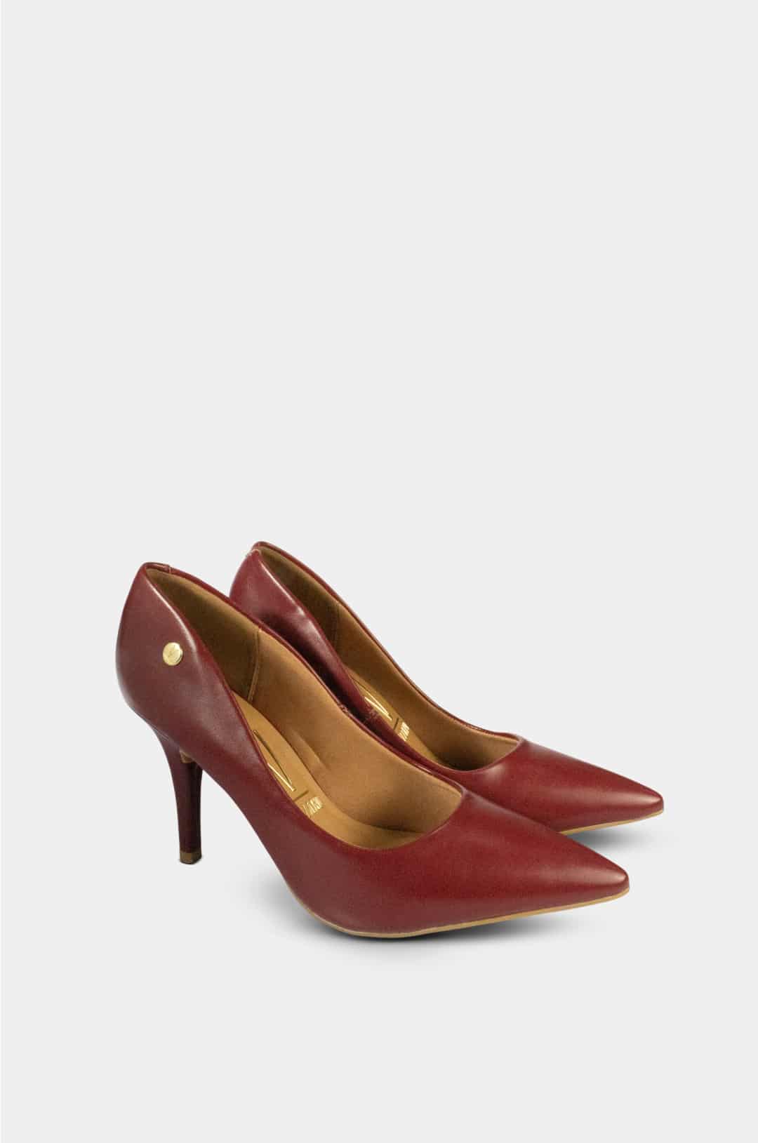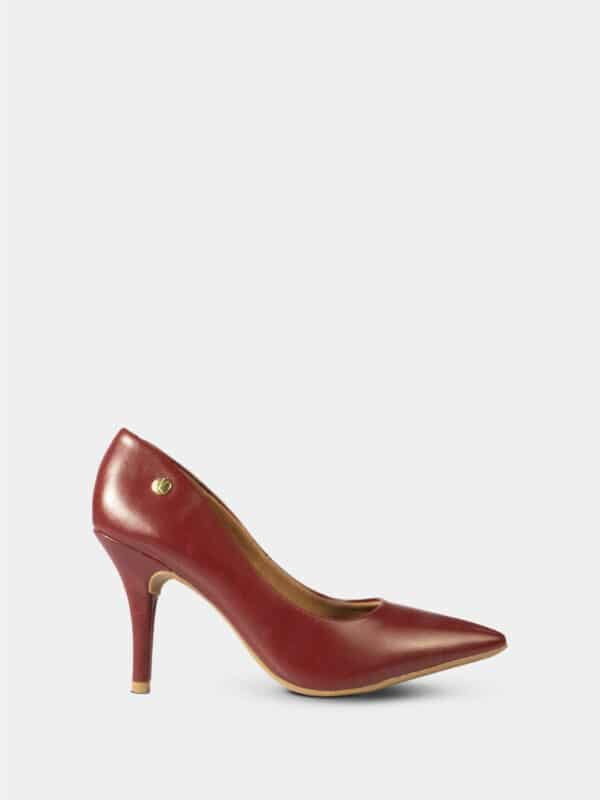 Zapato de la marca Vizzano, elaborado en material sintético liso de color rojo intenso, con un diseño elegante y sofisticado. Presenta una punta fina y alargada que estiliza el pie, y un tacón delgado de aproximadamente 7.5 cm de altura, aportando una silueta femenina y refinada. Su acabado brillante y su estructura clásica lo convierten en una opción ideal para ocasiones formales o looks de noche, combinando estilo y comodidad característica de la marca Vizzano.
