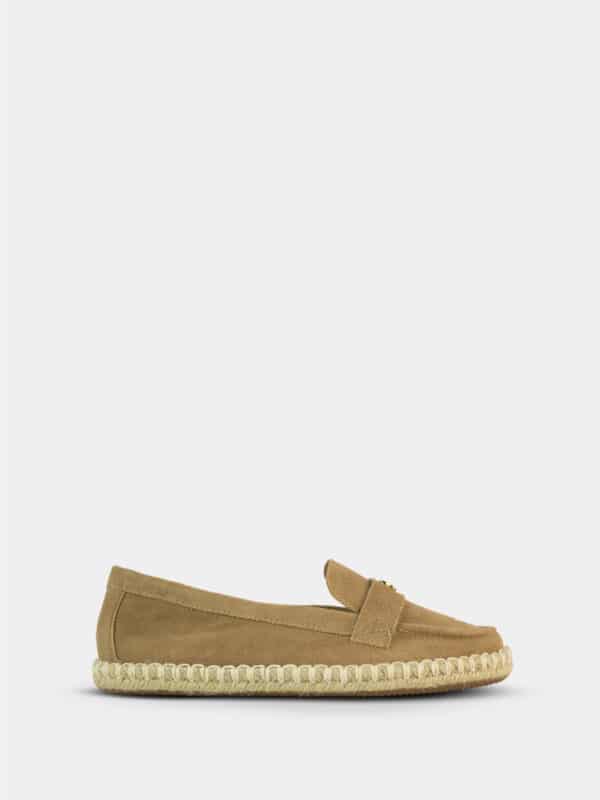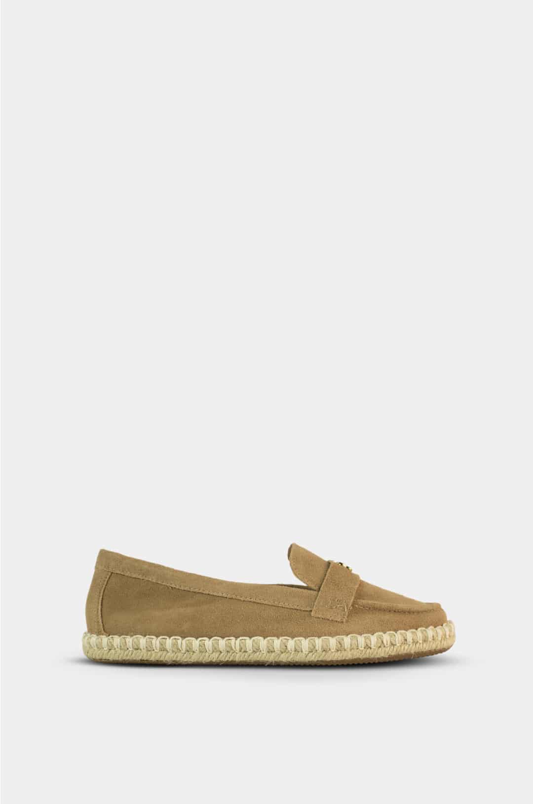 Este mocasín tipo alpargata es la combinación perfecta entre estilo clásico y comodidad moderna. Su diseño limpio y sofisticado lo convierte en un básico infaltable para quienes buscan un calzado versátil, ideal tanto para el día a día como para ocasiones casuales elegantes. Fabricado en material tipo gamuza y con suela de yute, ofrece un look natural, fresco y atemporal, perfecto para climas cálidos y estilos relajados pero bien definidos.